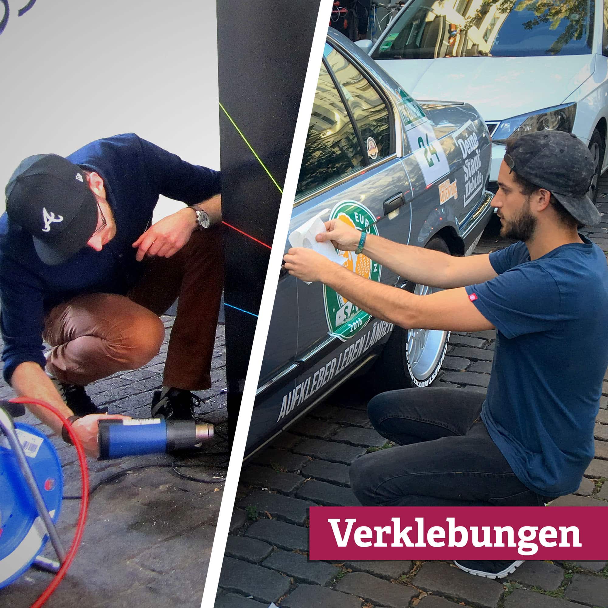 Bild von DeineStadtklebt.de-Mitarbeitern bei der Verklebung und Entfernung der AufkleberWer kennt das nicht? Man hat sich den besten Sticker aller Zeiten drucken lassen und beklebt erst einmal alles, was in greifbarer Nähe ist. Sei es Muttis neuer Kühlschrank, den Badezimmerspiegel (der einen besonders montags früh immer komisch anguckt), oder die viel zu karge Zimmertür.