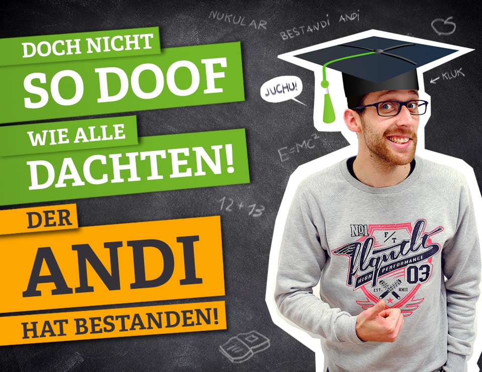 Unser Kollege Andi aus dem Digitaldruckbereich war in den letzten Monaten besonders fleißig und darf sich nun – nach vielen Unterrichtseinheiten und Prüfungen – Medienfachwirt, B.Eng. Mediamanagement oder auch einfach Meister-Andi nennen. Wir klopfen ihm stolz auf die Schulter: Herzlichen Glückwunsch, Andi!