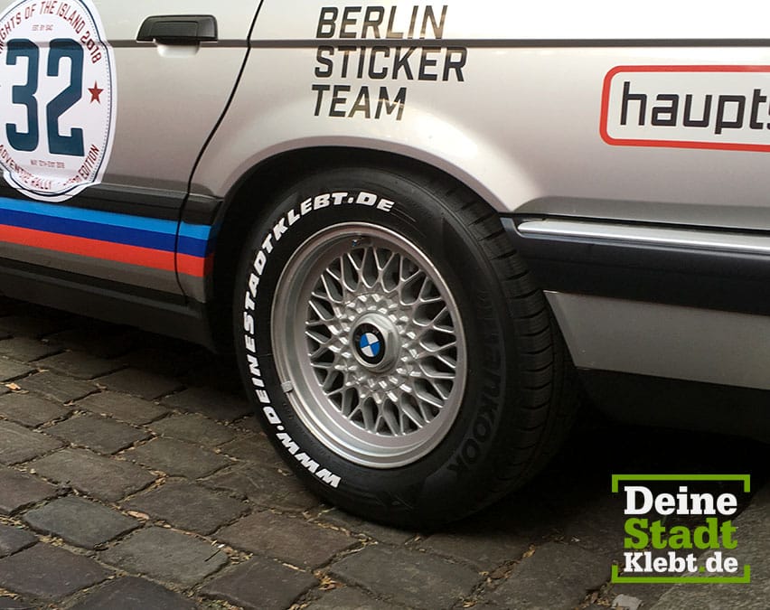 Die Schriften wurden direkt geplottet, der Rest wurde 4-farbig gedruckt. Selbst Reifenaufkleber pimpen das Auto. Die großen Starnummern machen die Retro-Optik perfekt.
