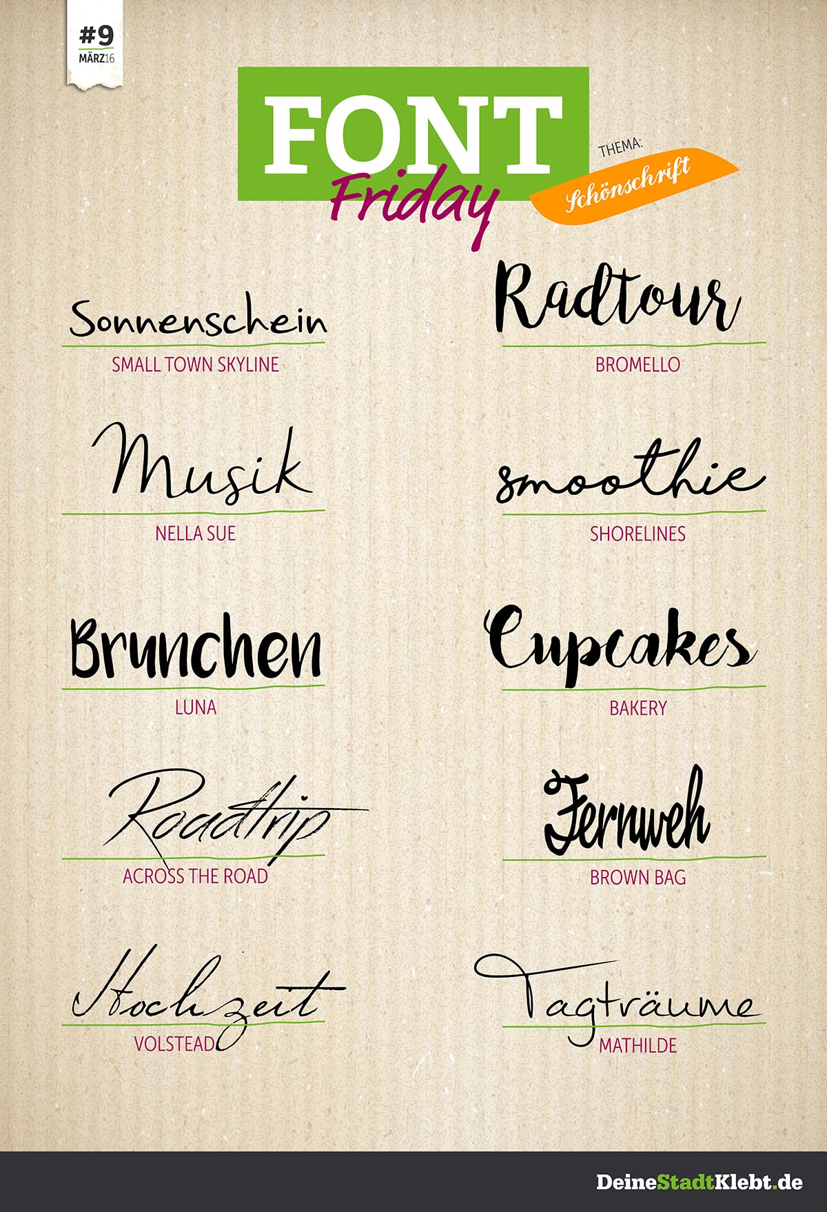 Wenn dir das viele Üben zu viel Arbeit ist, kanst du auch kostenlose Schriften im Netz runterladen und für deine Projekte nutzen. Wir haben dir einige Schönschriften zusammengestellt. Vielleicht dienen sie dir als Inspiration für dein erstes Handletteringprojekt und zur Gestaltung deines individuellen Stickers.