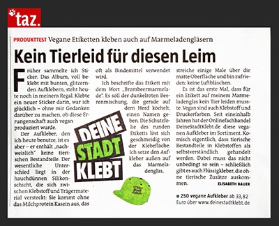 Vegane Aufkleber druckenWer die Berliner taz. liest, der weiß es seit dem Wochenende. Jetzt noch mal für alle, die gerne wissen wollen, wo man vegane